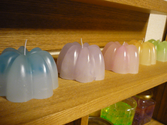 とりあえずシンプルに5色のキャンドルをゼリーのシリコン型で作ってみました。