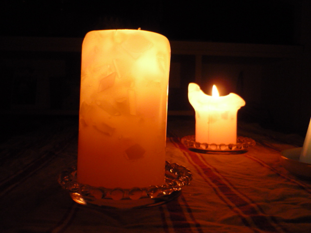 手前の大きなキャンドルは周りのロウまでは溶けずに残っています。